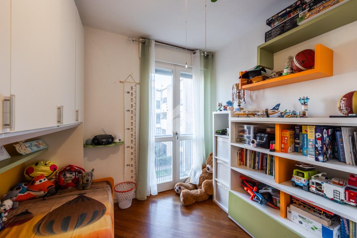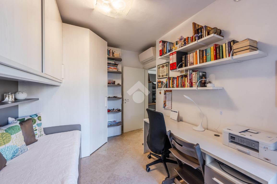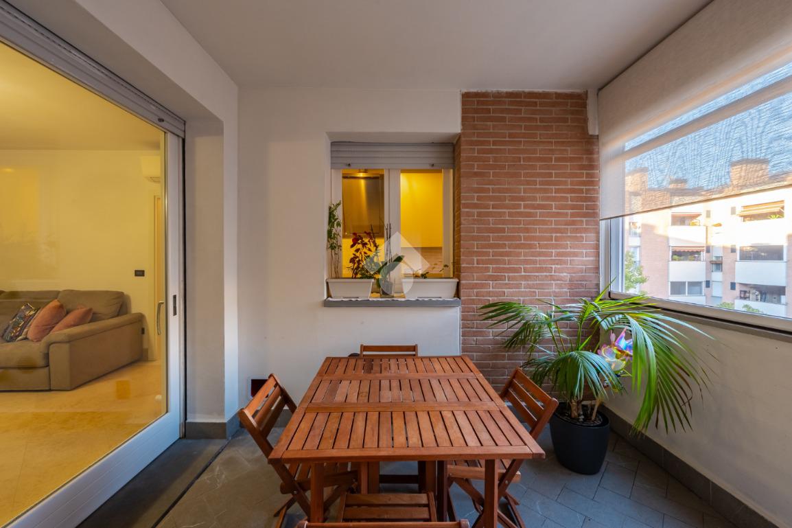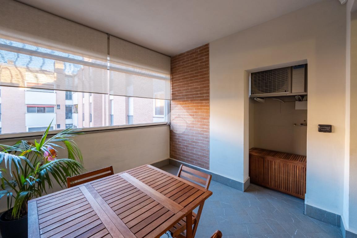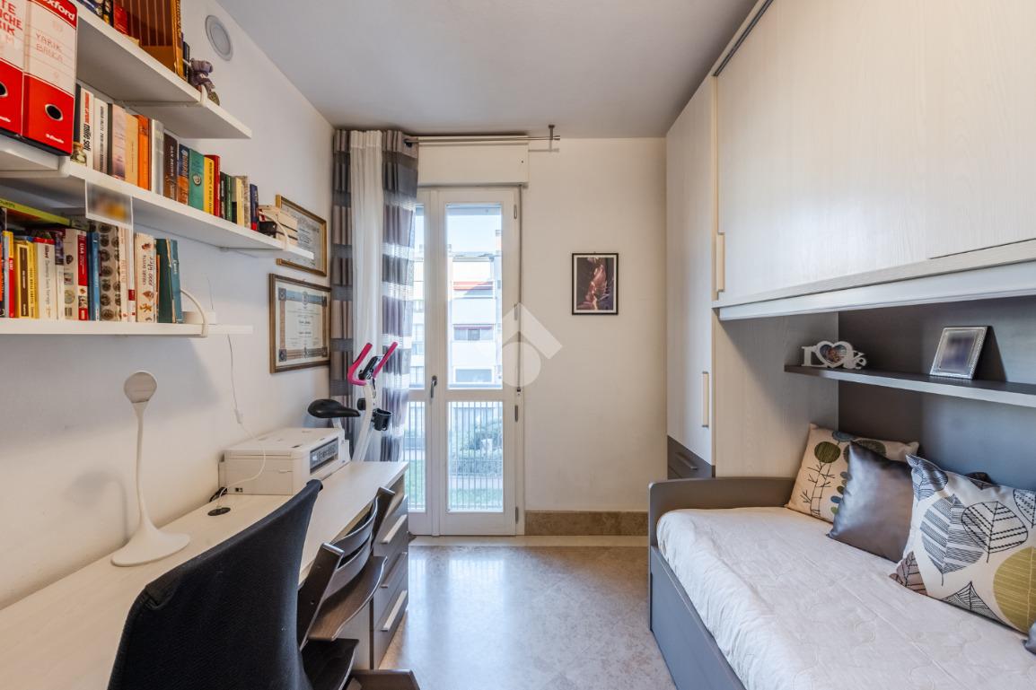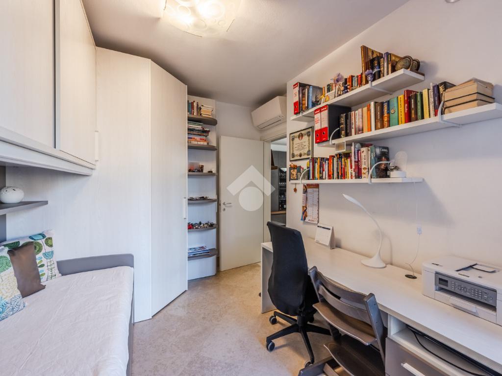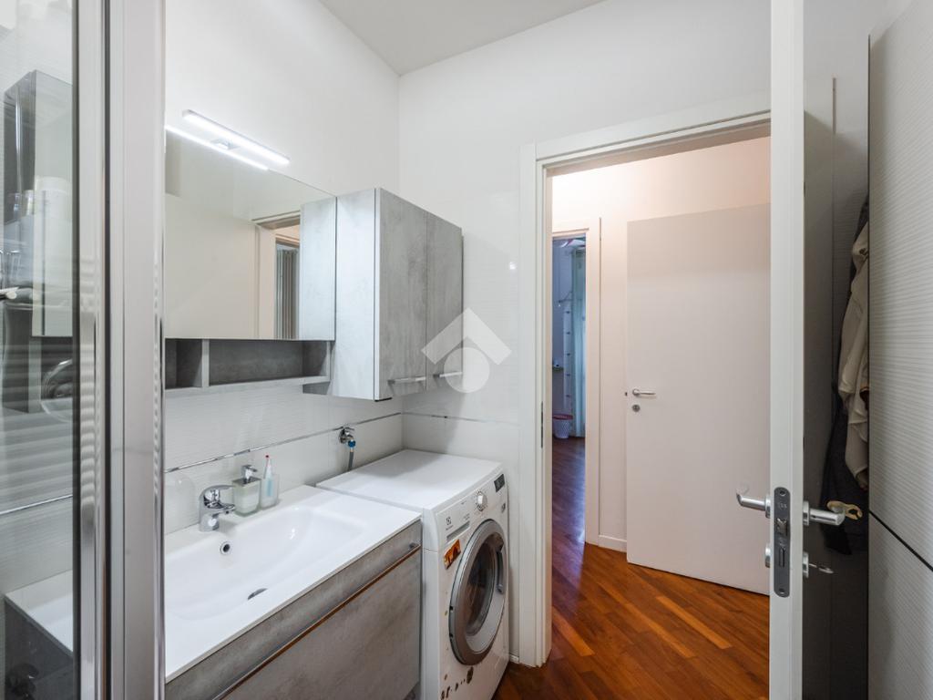 Ingresso direttamente sulla zona living, in cui soggiorno e angolo cottura, parzialmente separati, convivono armoniosamente, terrazza abitabile di oltre 9 mq, disimpegno zona notte, due camere da letto, uno studio e due bagni. Completa la proprietà una spaziosa autorimessa al piano interrato. Il riscaldamento è di tipo centralizzato con teleriscaldamento e le spese di gestione condominiali risultano contenute.
