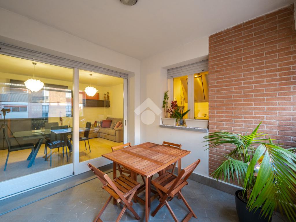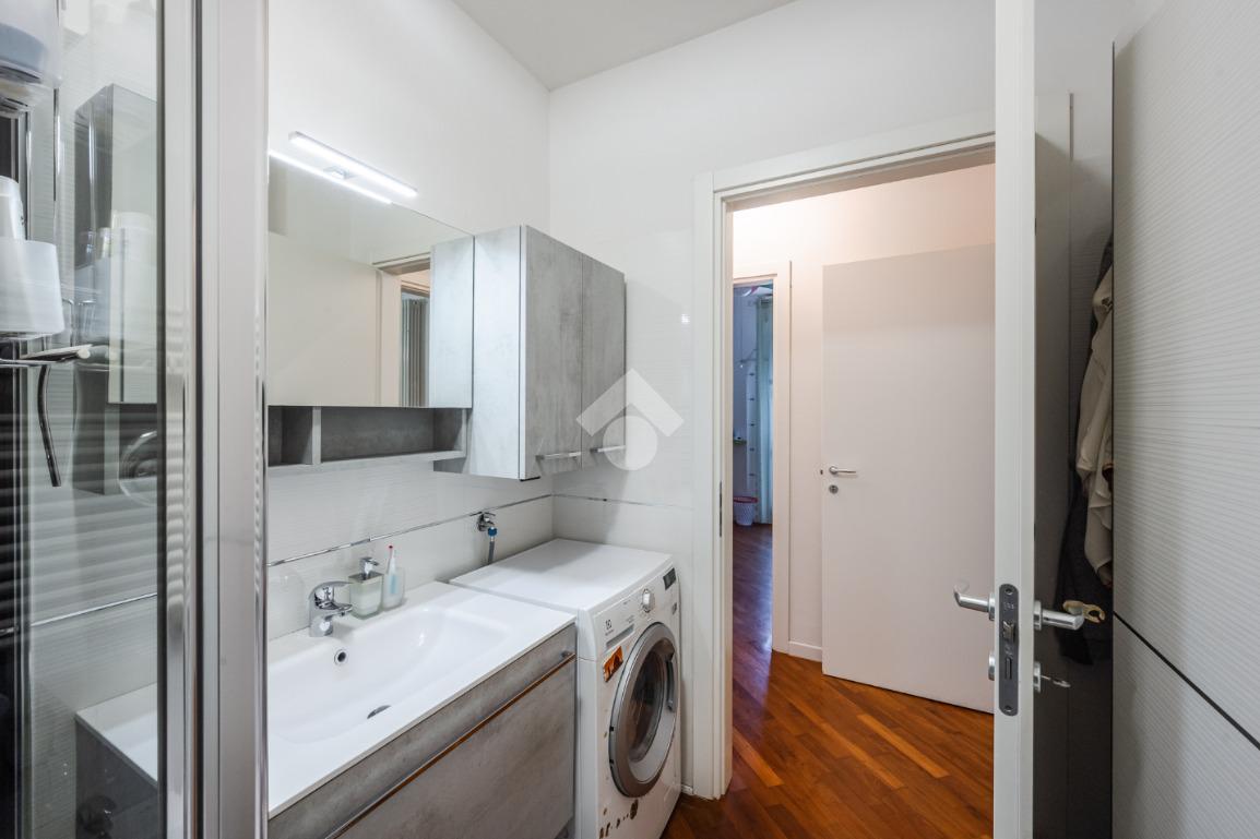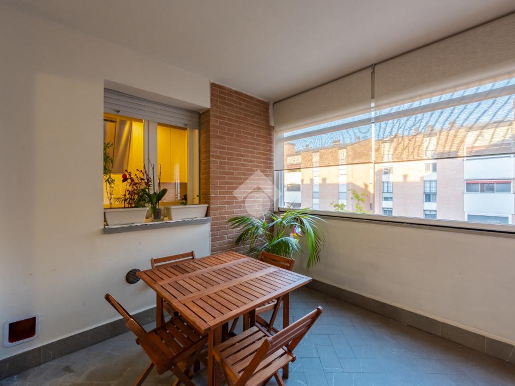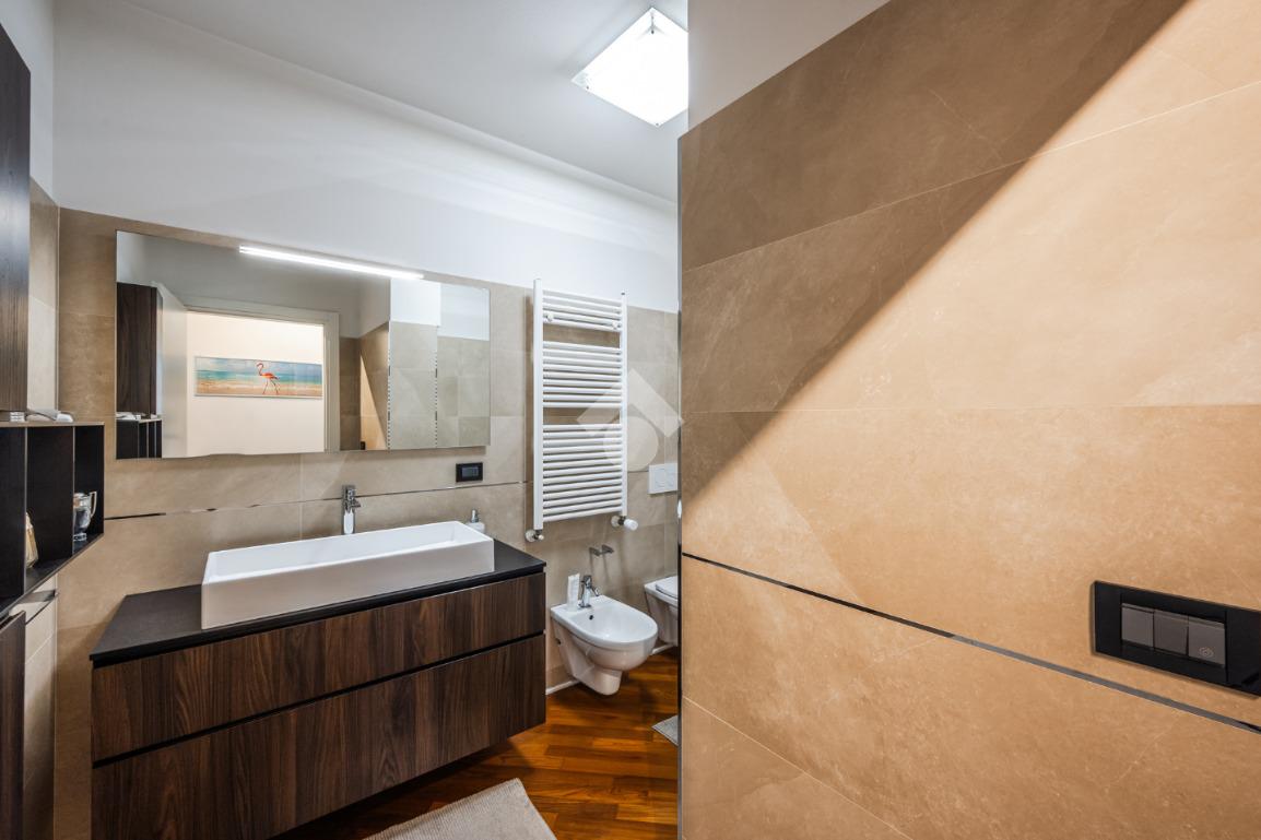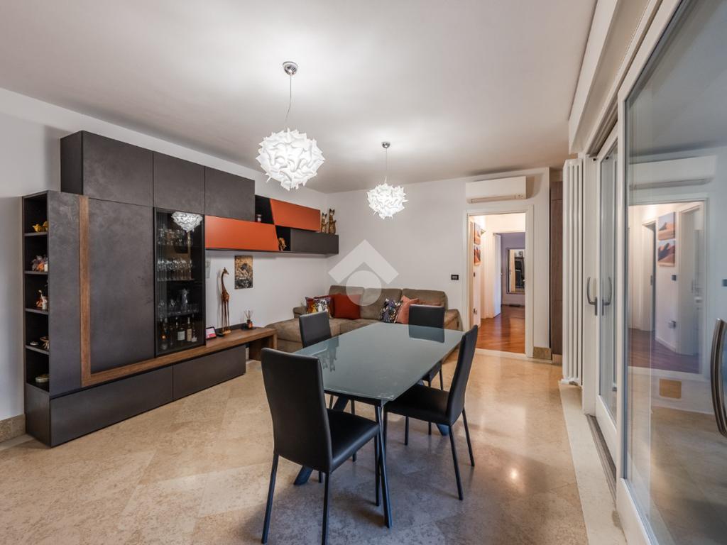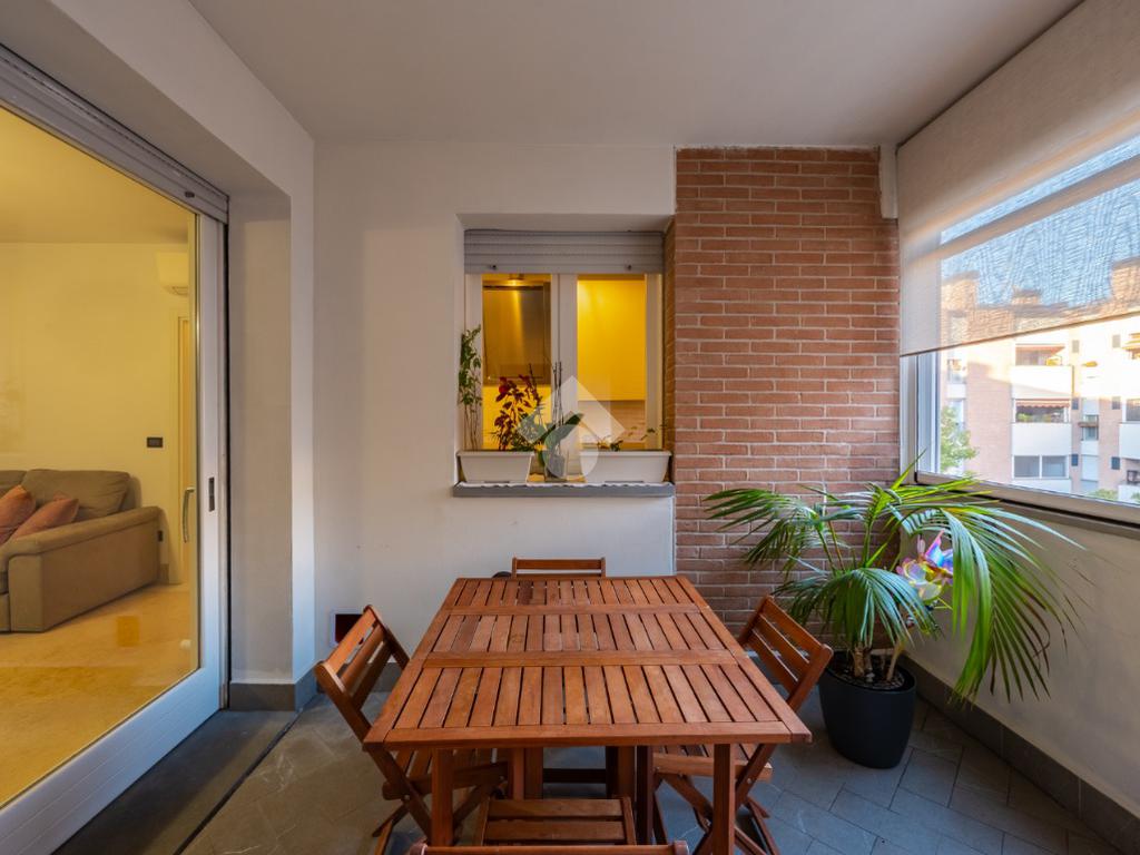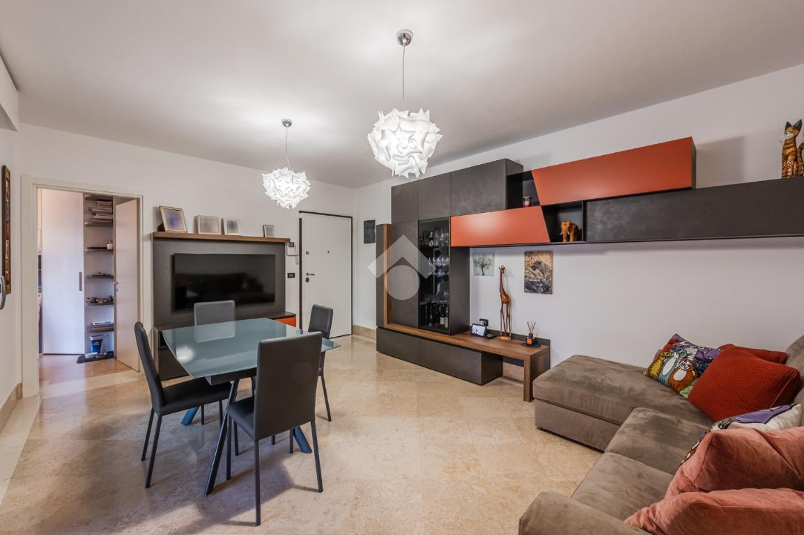 Ingresso direttamente sulla zona living, in cui soggiorno e angolo cottura, parzialmente separati, convivono armoniosamente, terrazza abitabile di oltre 9 mq, disimpegno zona notte, due camere da letto, uno studio e due bagni. Completa la proprietà una spaziosa autorimessa al piano interrato. Il riscaldamento è di tipo centralizzato con teleriscaldamento e le spese di gestione condominiali risultano contenute.