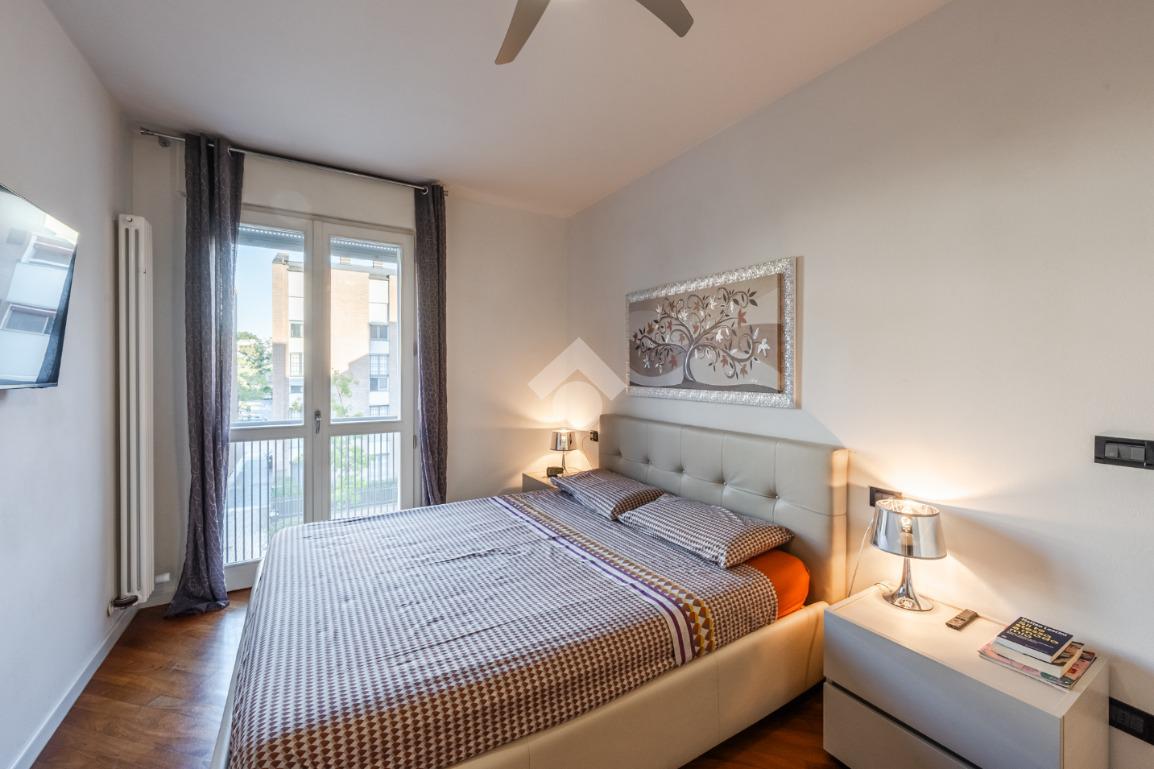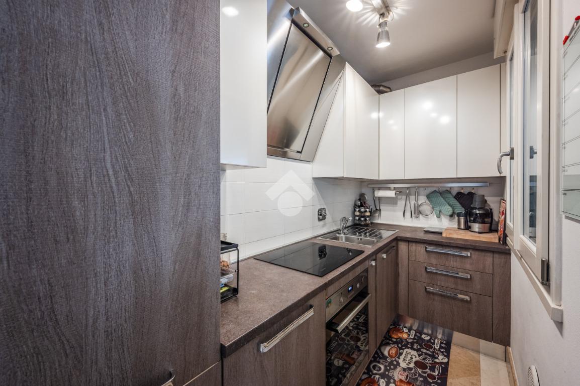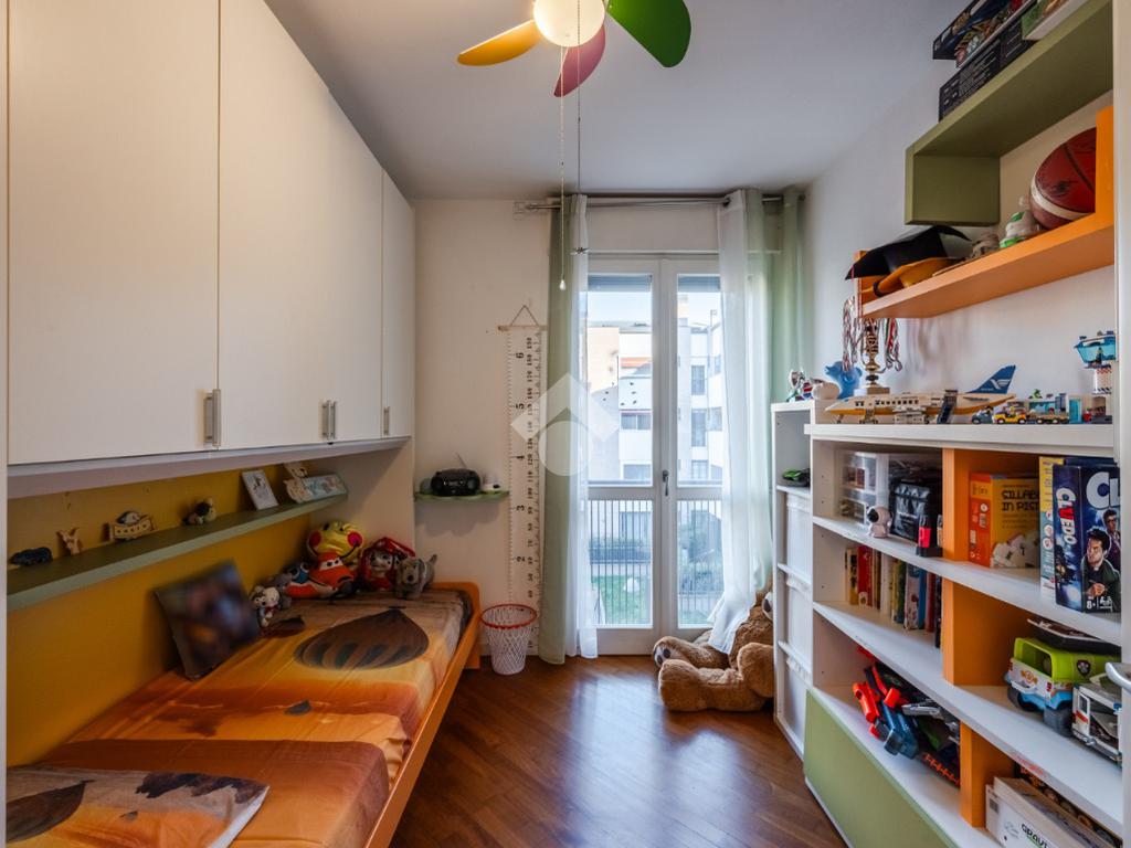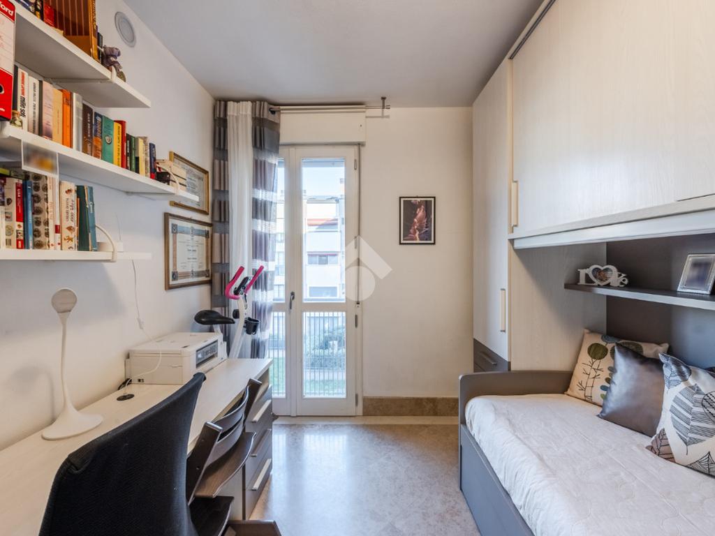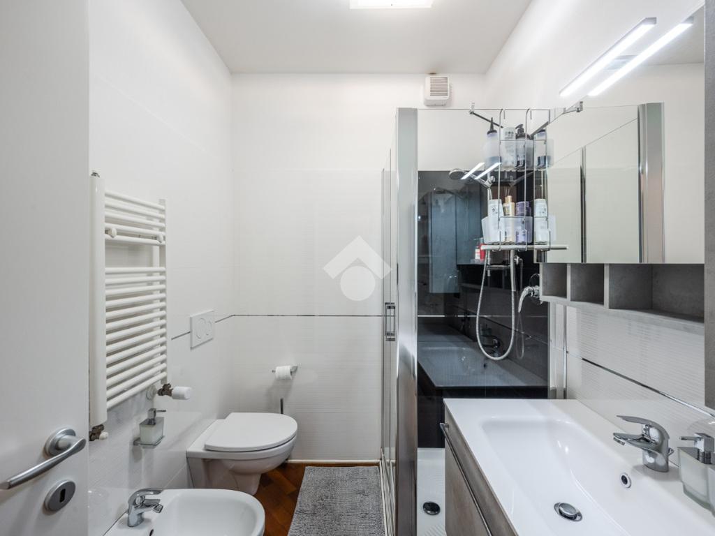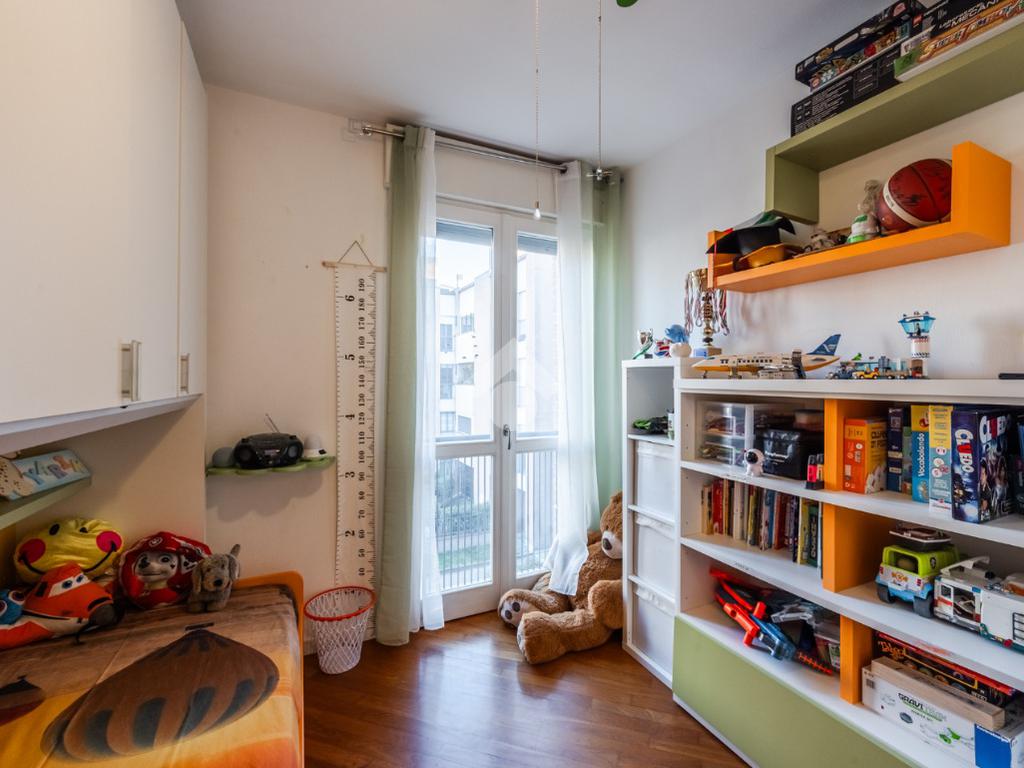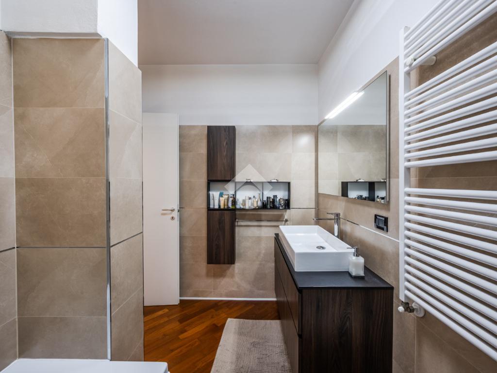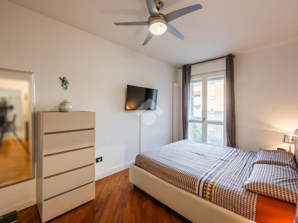 Ingresso direttamente sulla zona living, in cui soggiorno e angolo cottura, parzialmente separati, convivono armoniosamente, terrazza abitabile di oltre 9 mq, disimpegno zona notte, due camere da letto, uno studio e due bagni. Completa la proprietà una spaziosa autorimessa al piano interrato. Il riscaldamento è di tipo centralizzato con teleriscaldamento e le spese di gestione condominiali risultano contenute.