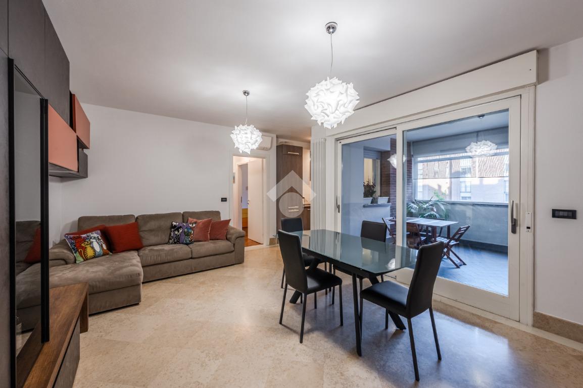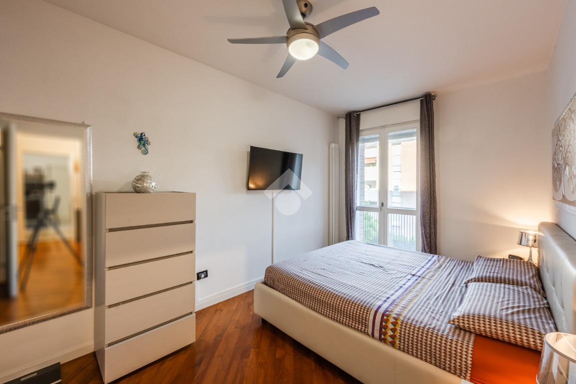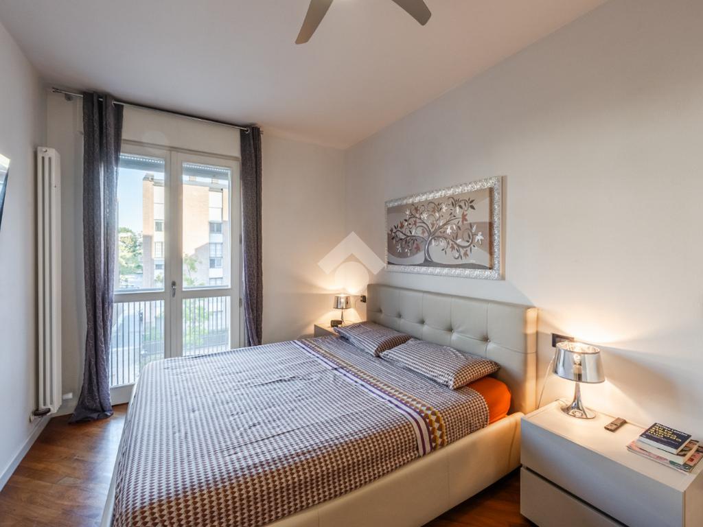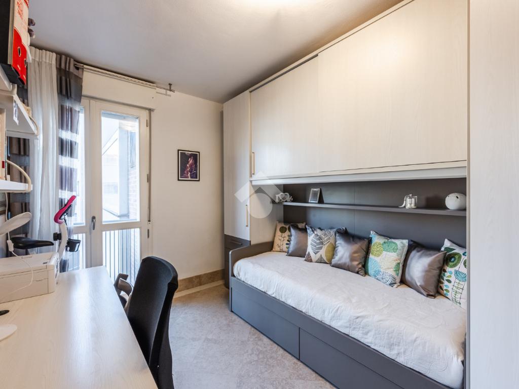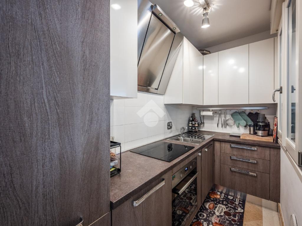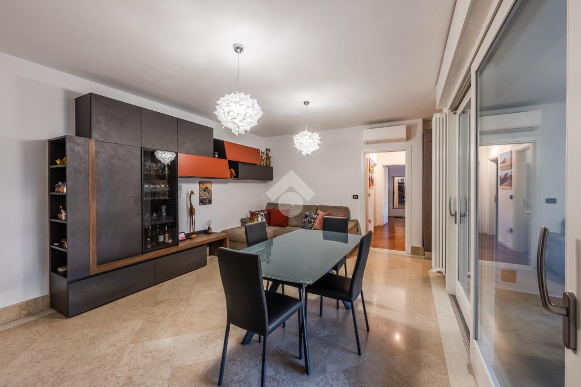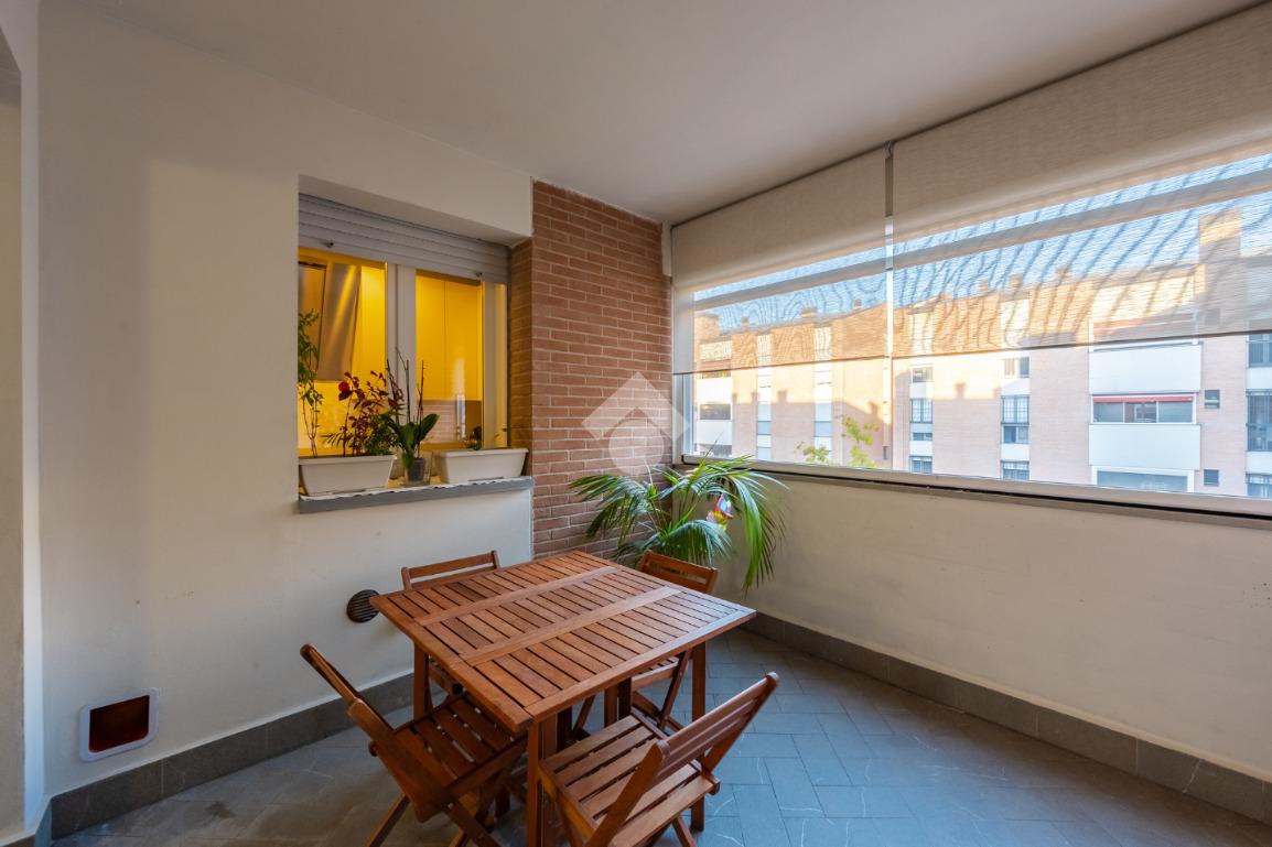 Ingresso direttamente sulla zona living, in cui soggiorno e angolo cottura, parzialmente separati, convivono armoniosamente, terrazza abitabile di oltre 9 mq, disimpegno zona notte, due camere da letto, uno studio e due bagni. Completa la proprietà una spaziosa autorimessa al piano interrato. Il riscaldamento è di tipo centralizzato con teleriscaldamento e le spese di gestione condominiali risultano contenute.