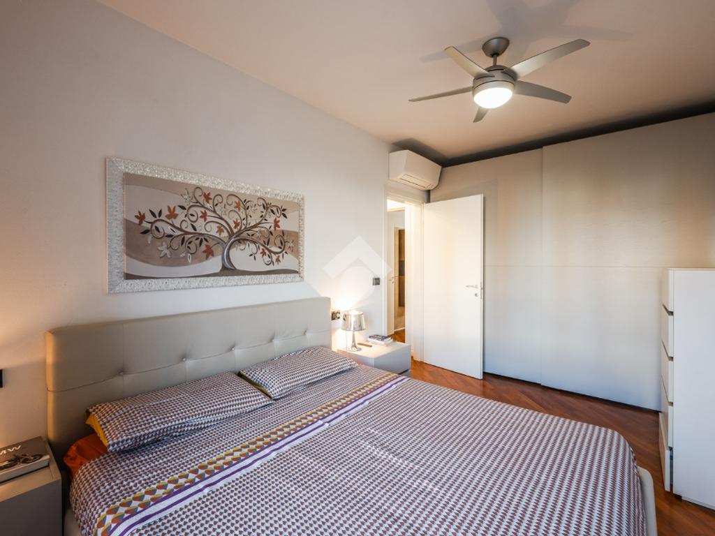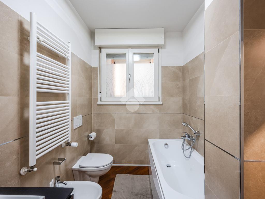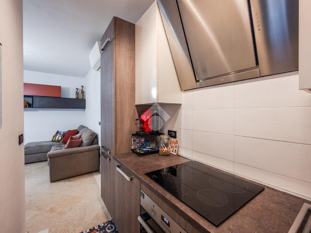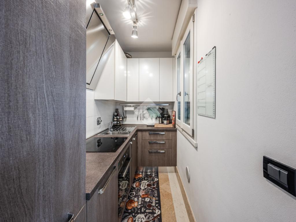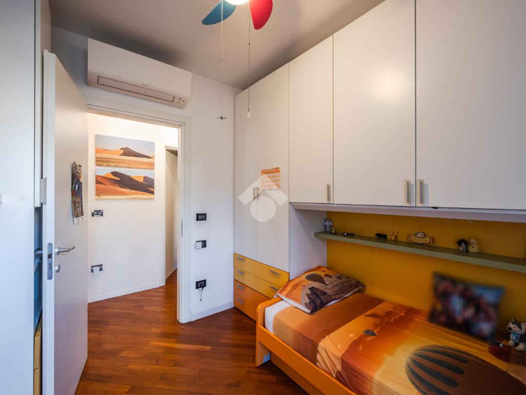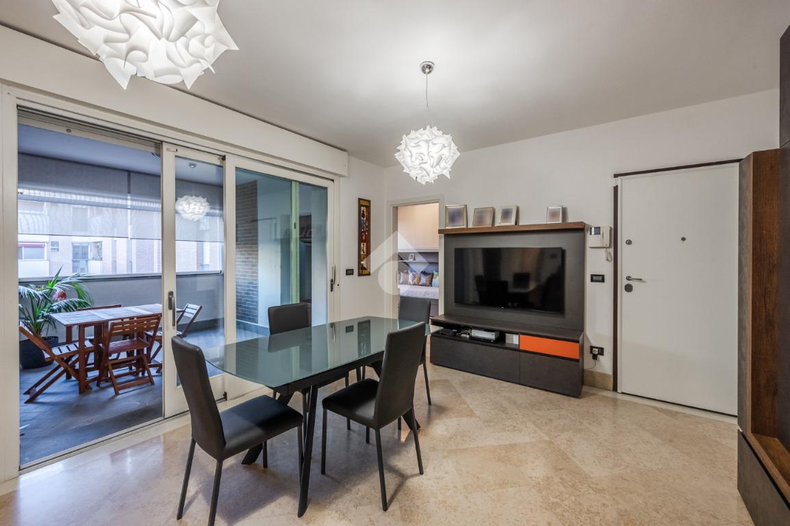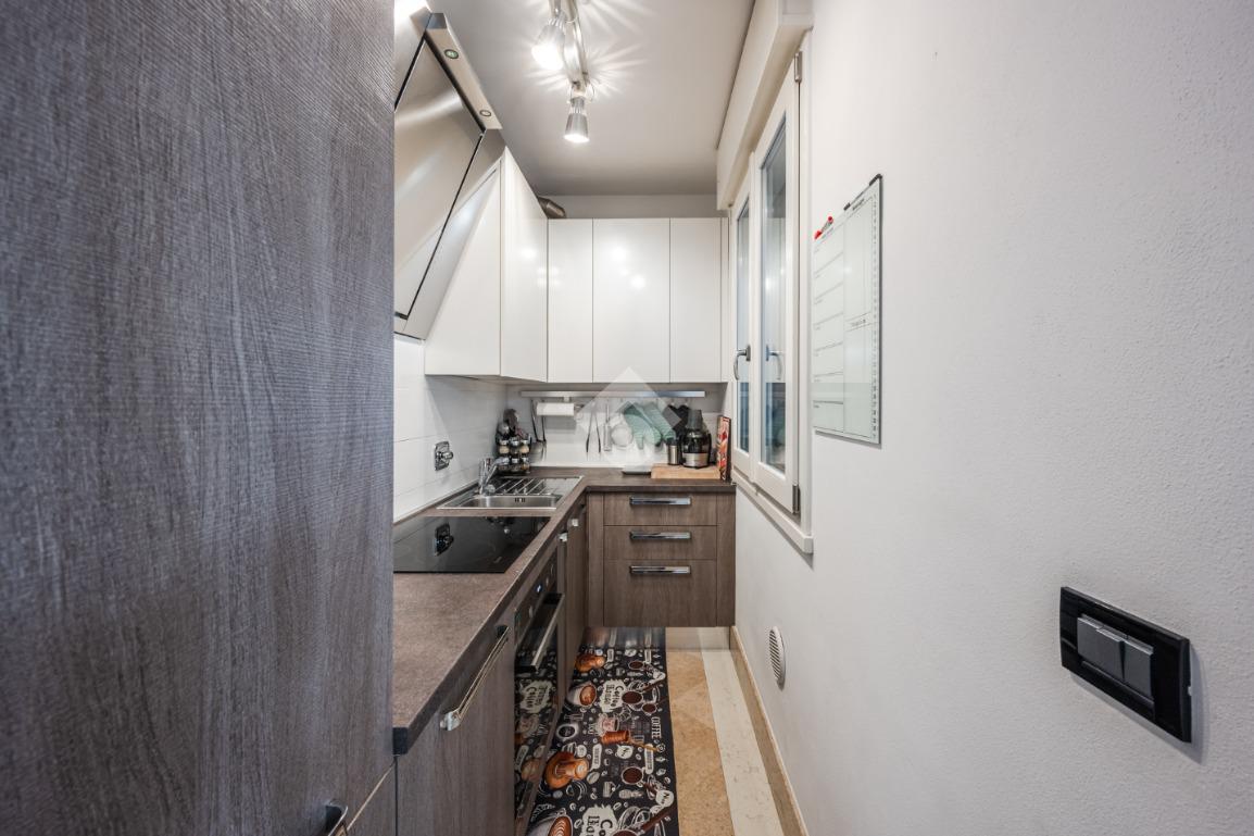 Ingresso direttamente sulla zona living, in cui soggiorno e angolo cottura, parzialmente separati, convivono armoniosamente, terrazza abitabile di oltre 9 mq, disimpegno zona notte, due camere da letto, uno studio e due bagni. Completa la proprietà una spaziosa autorimessa al piano interrato. Il riscaldamento è di tipo centralizzato con teleriscaldamento e le spese di gestione condominiali risultano contenute.